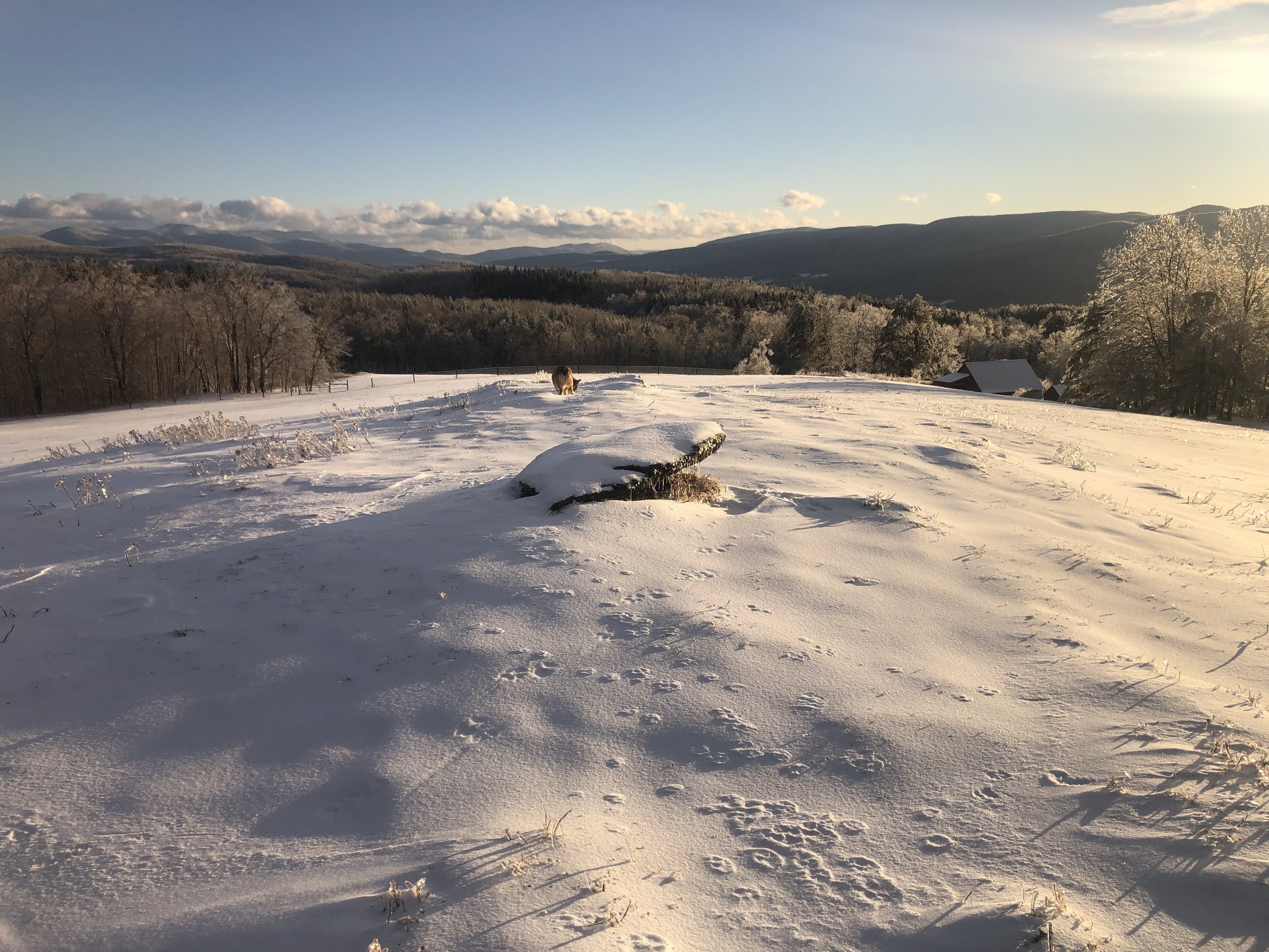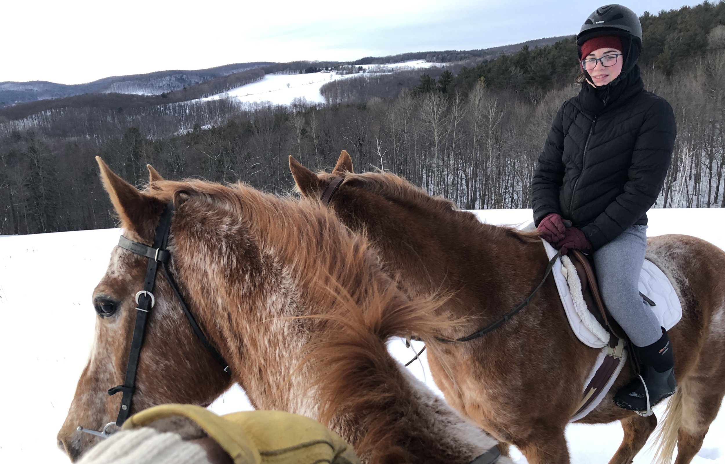 Snow brings a quieter pace and a different use of the landscape. Trails remain open for Nordic skiing and snowshoeing, and pastures and woods can be explored on foot or on horseback in winter conditions. The farm is also within close reach of established ski areas, including Prospect Mountain, Stratton, Bromley, Mount Snow, and Jiminy Peak, offering both Nordic and downhill terrain across the region